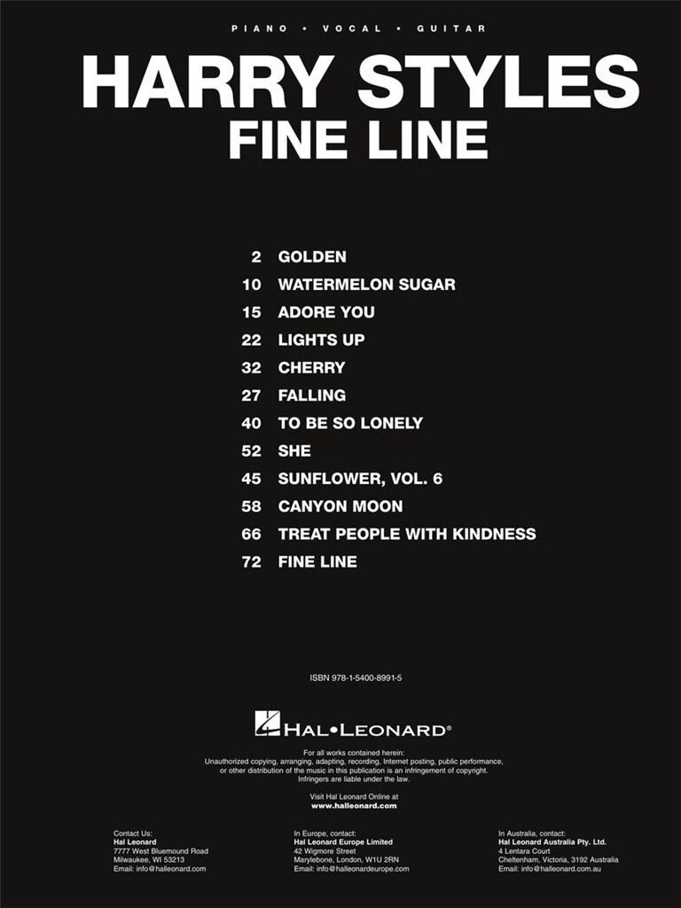 HARRY STYLES FINE LINE PVG iz kategorije zabavna glasba sodi med odlične Notna literatura.