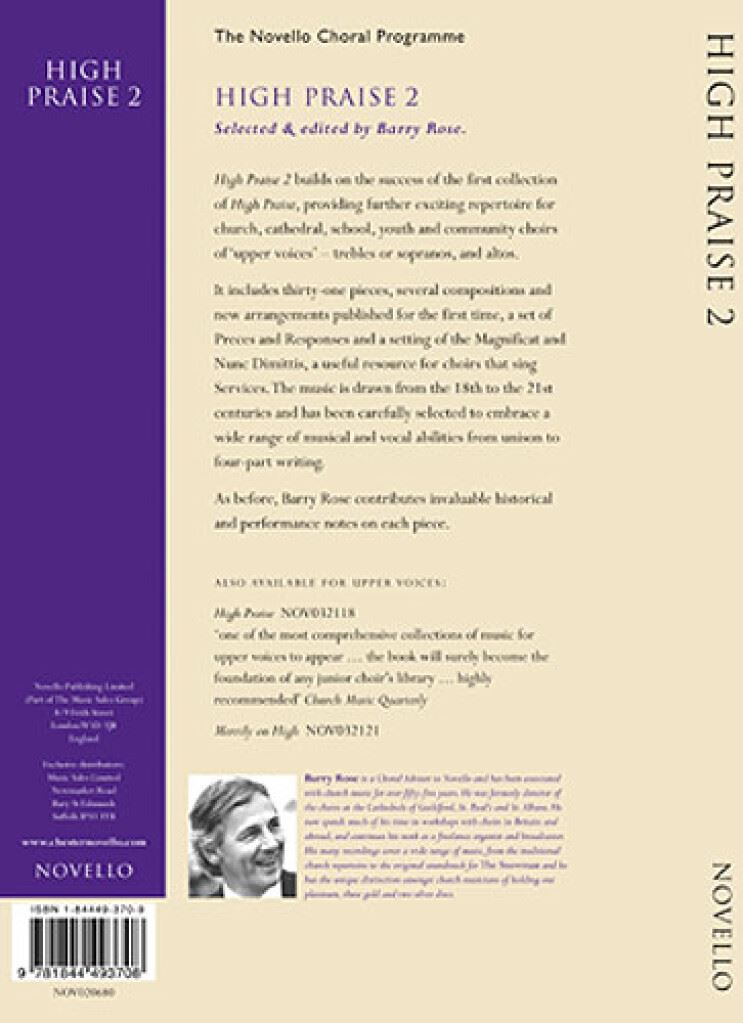 HIGH PRAISE 2 SECOND BOOK OF ANTHEMS UPPER VOICE CHOIRS iz kategorije zbori sodi med odlične vokal.NOV020680 1. A Christmas Carol [Bax, Arnold] 2. A Grateful Heart [Plumstead, Mar ...