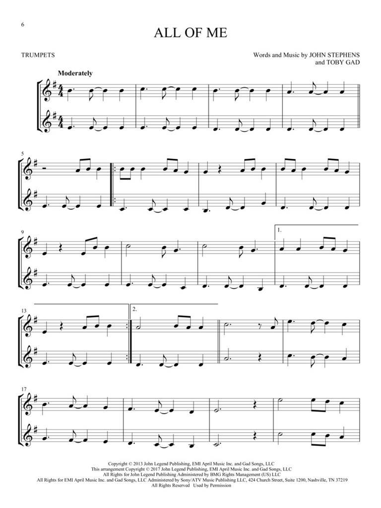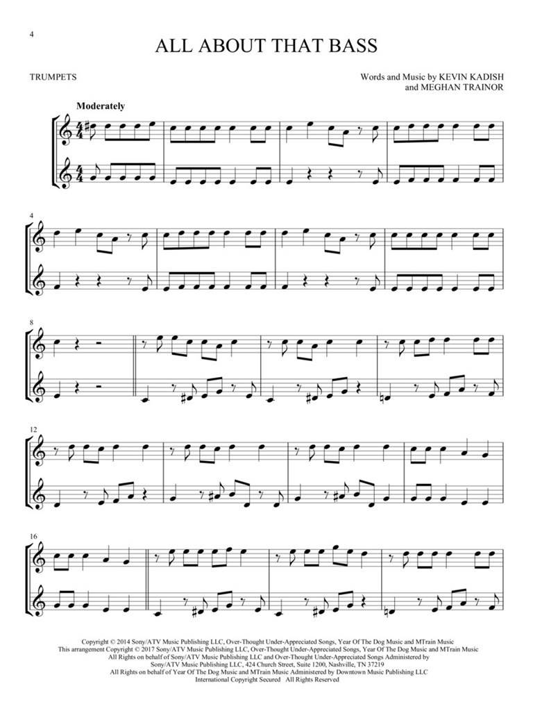 HIT SONGS FOR TWO TRUMPETS EASY DUETS iz kategorije trobila komorni sestavi sodi med odlične trobila.HL00252485 All About That Bass • Brave • Can't Stop the Feeling • Grenade • He ...