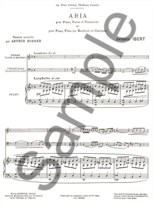 IBERT:ARIA FLUTE(OU HAUTBOISE) CLARINETTE ET PIANO