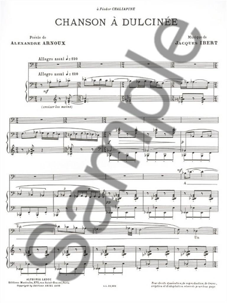 IBERT:CHANSONS DE DON QUICHOTTE CHANSON A DULCINEE LOW VOICE AND PIANO