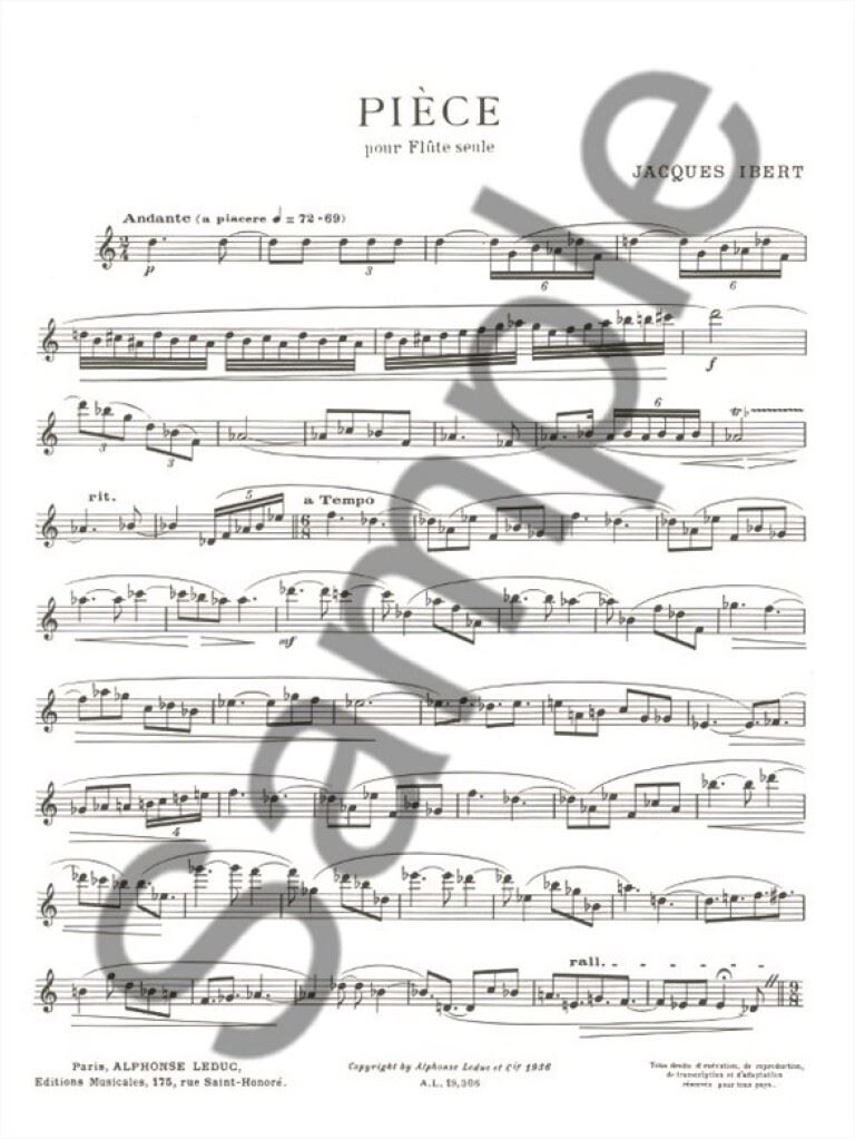 IBERT:PIECE POUR FLUTE SEULE iz kategorije skladbe sodi med odlične flavta.