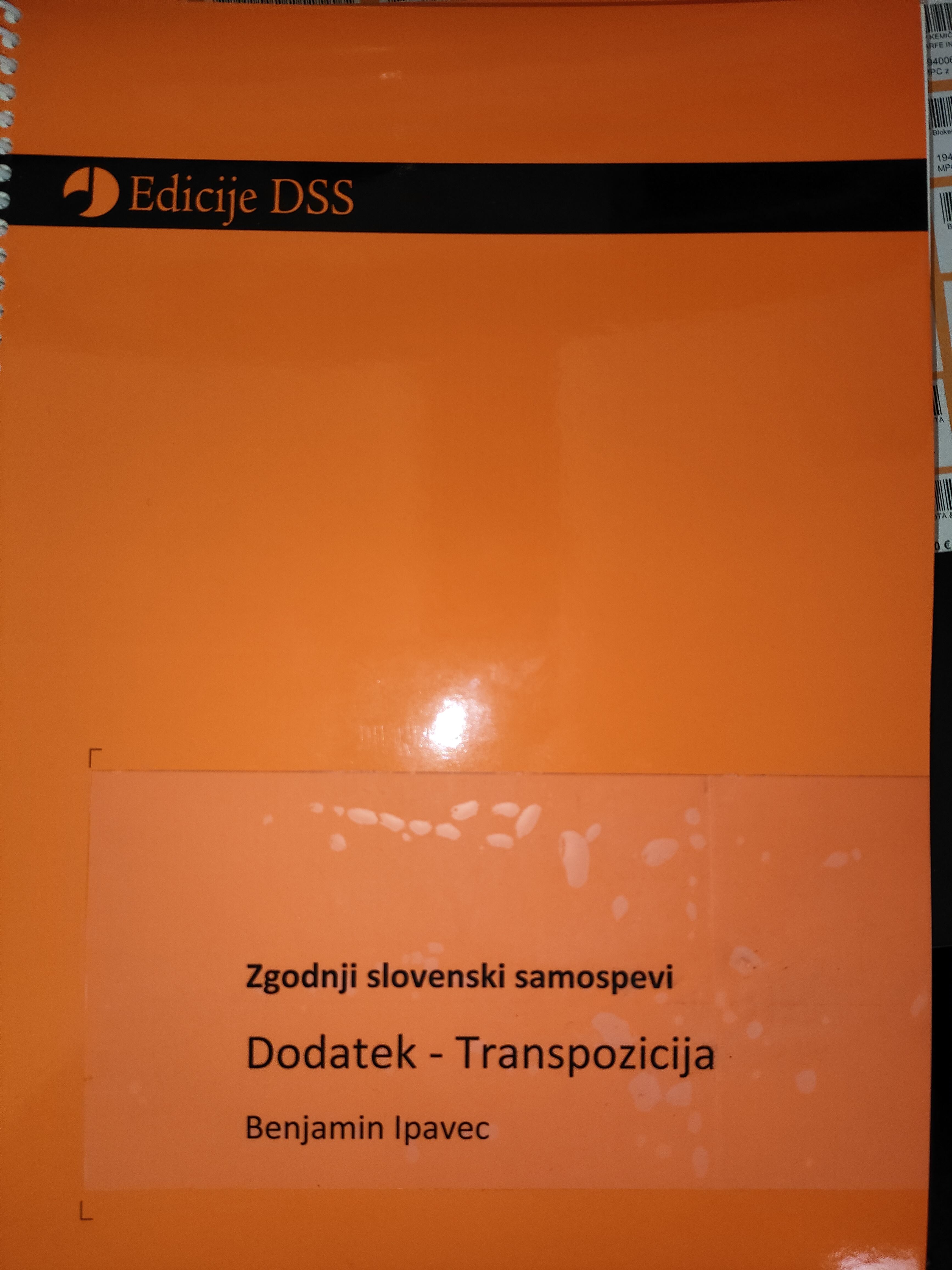 IPAVEC:ZGODNJI SLOVENSKI SAMOSPEVI-DODATEK TRANSPOZICIJA