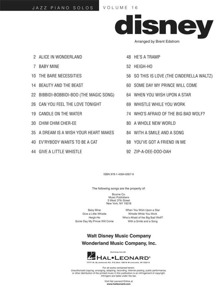 JAZZ PIANO SOLOS DISNEY VOL.16