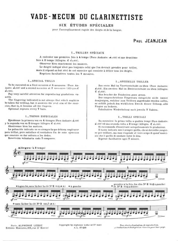 JEANJEAN:VADEMECUM DU CLARINETTISTE iz kategorije etude sodi med odlične klarinet.