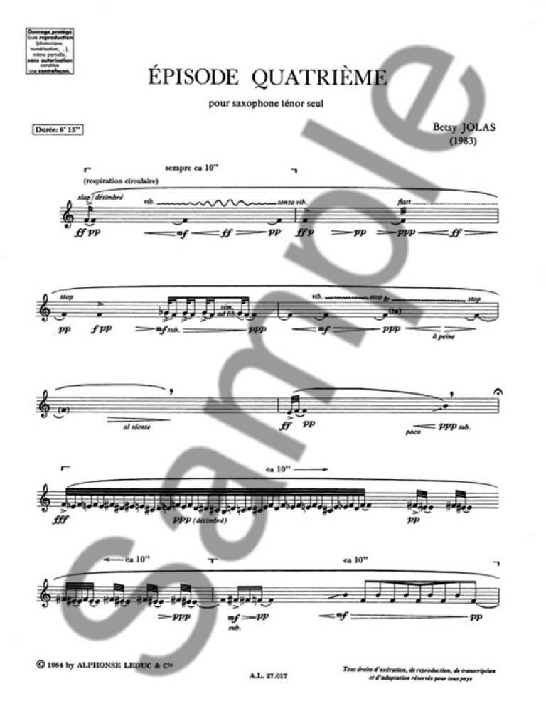 JOLAS: EPISODE QUATRIEME POUR SAXOPHONE TENOR SEUL iz kategorije skladbe sodi med odlične saksofon.