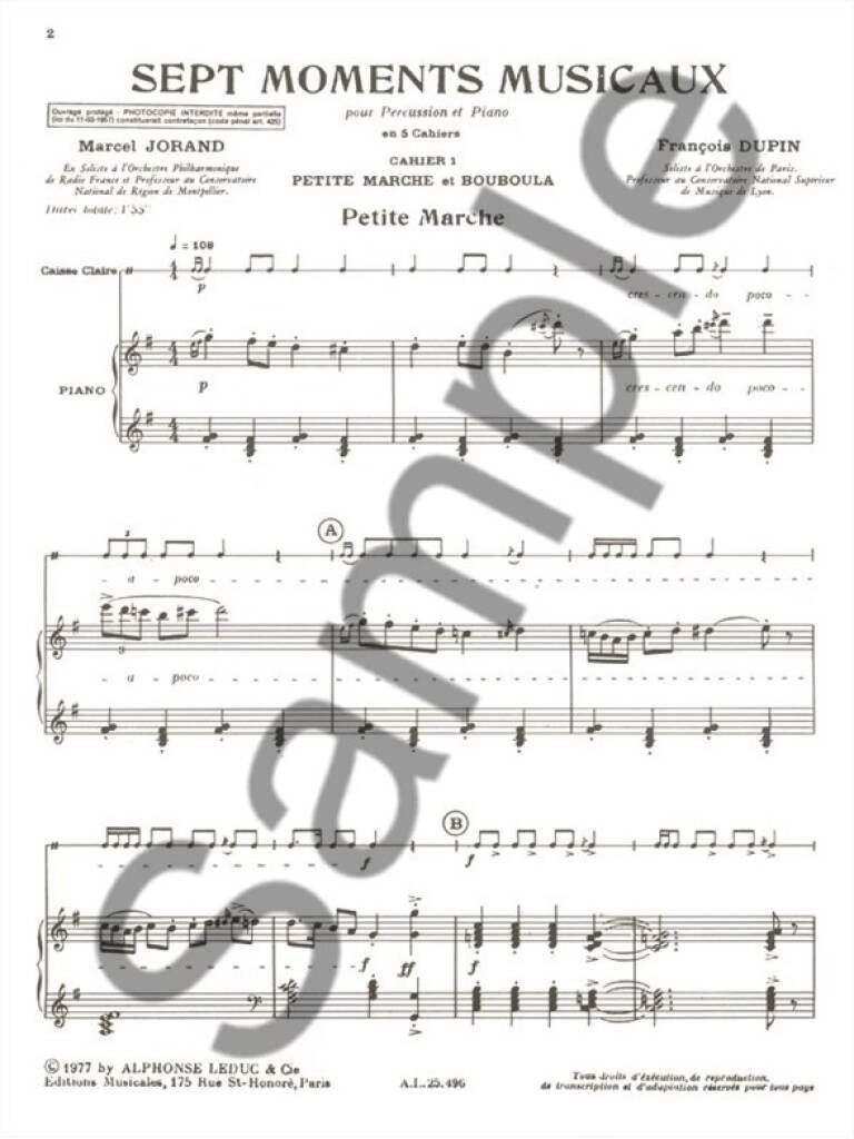 JORAND/DUPIN:SEPT MOMENTS MUSICAUX I iz kategorije skladbe sodi med odlične tolkala.