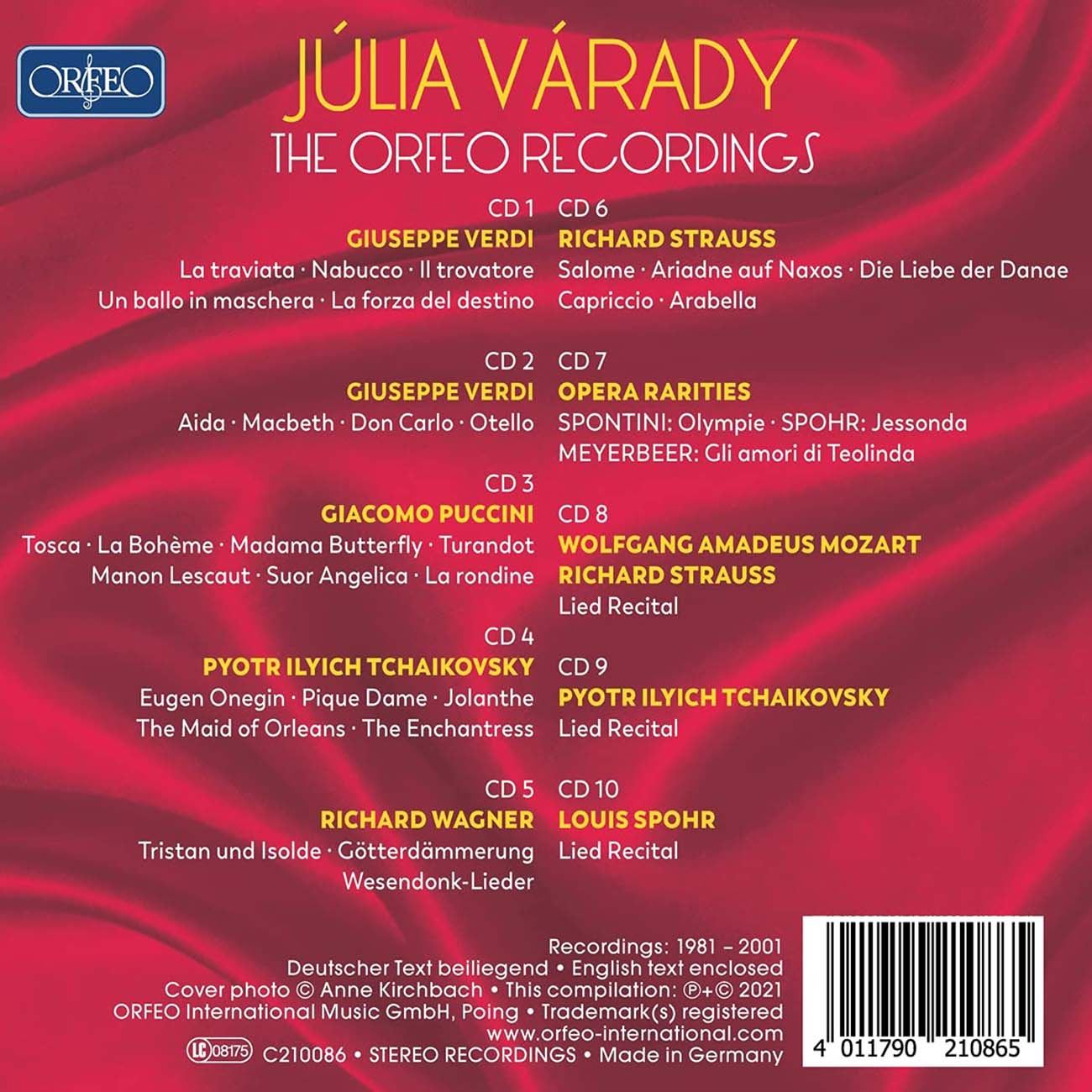 JULIA VARADY THE ORFEO RECORDINGS 5CD