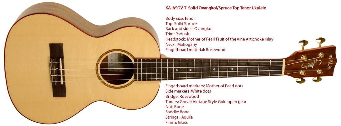 KALA TENOR UKULELE KA-ASOV-T Spruce Top Ukulele, Ovangkol Back, Highpolish w cas iz kategorije Ukulele sodi med odlične Druga brenkala.