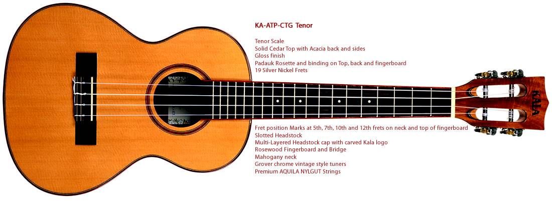 KALA TENOR UKULELE KA-ATP-CTG Solid Cedar Top, Acacia Back, High Polis incl.case