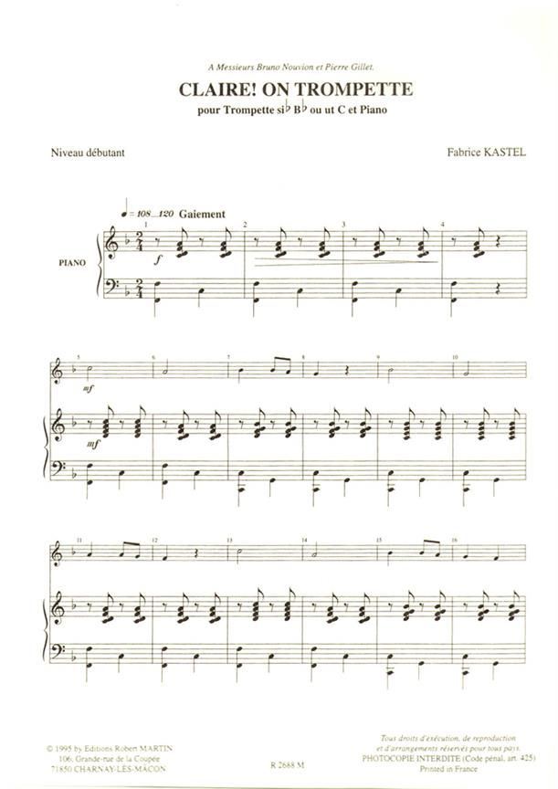 KASTEL:CLAIRE!ON TROMPETTE,SIB OU UT TROMPETTE ET PIANO iz kategorije skladbe sodi med odlične trobenta.