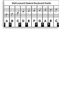 Ta priročena klaviatura na kartonu za začetnike nazorno prikazuje imena not in položaje not na visokih in nizkih tonih. Sprednji del vodila se prilega vsem 88 tipkam katerega koli klavirja, zadnji del vodiča pa je vadbena tipkovnica. Iz študentske klavirske knjižnice Hal Leonard.