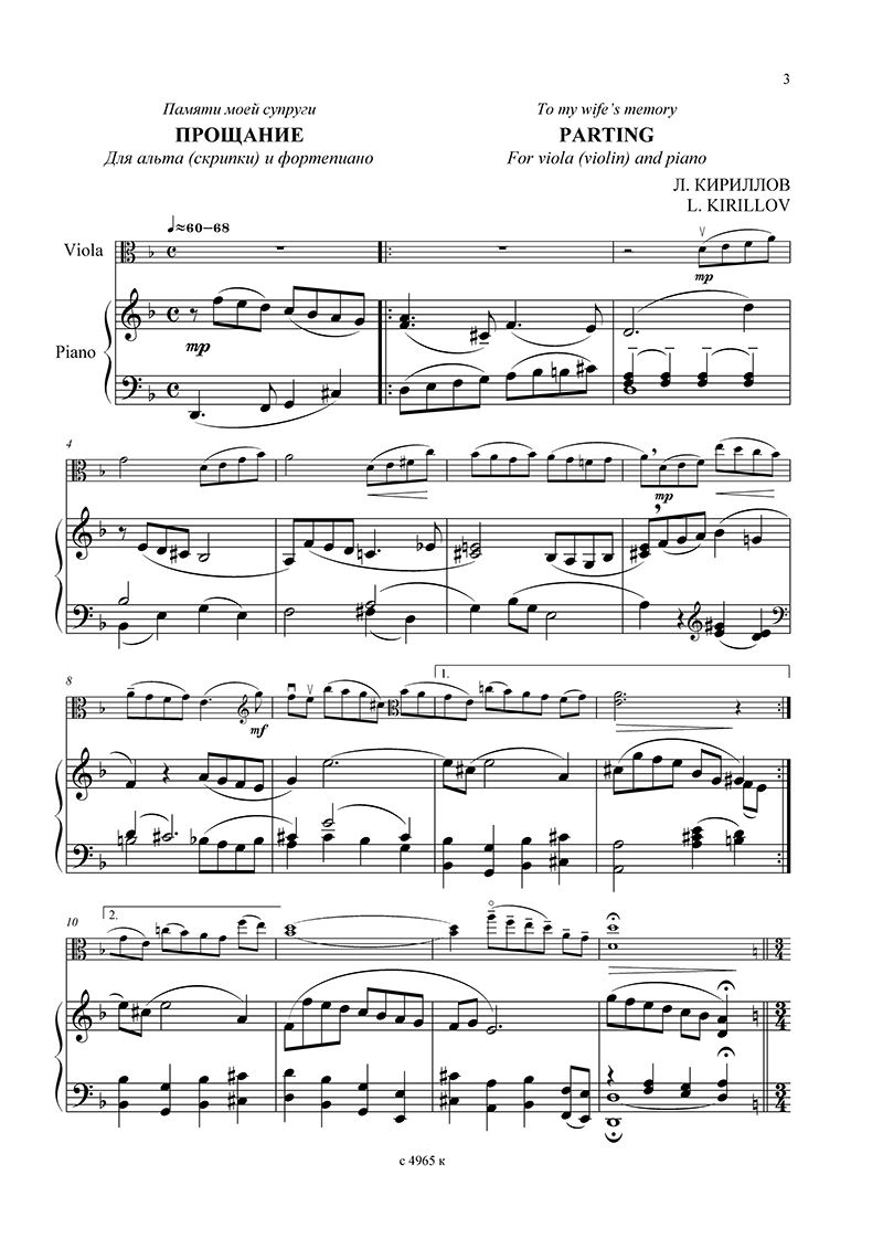 KIRILLOV:VIOLA PLAYER'S CONCERT REPERTOIRE iz kategorije skladbe sodi med odlične viola. PROSCHANIE. Dlja alta (skripki) i fortepiano (posmotret noty) PROSCHANIE. Dlja alta i strun ...