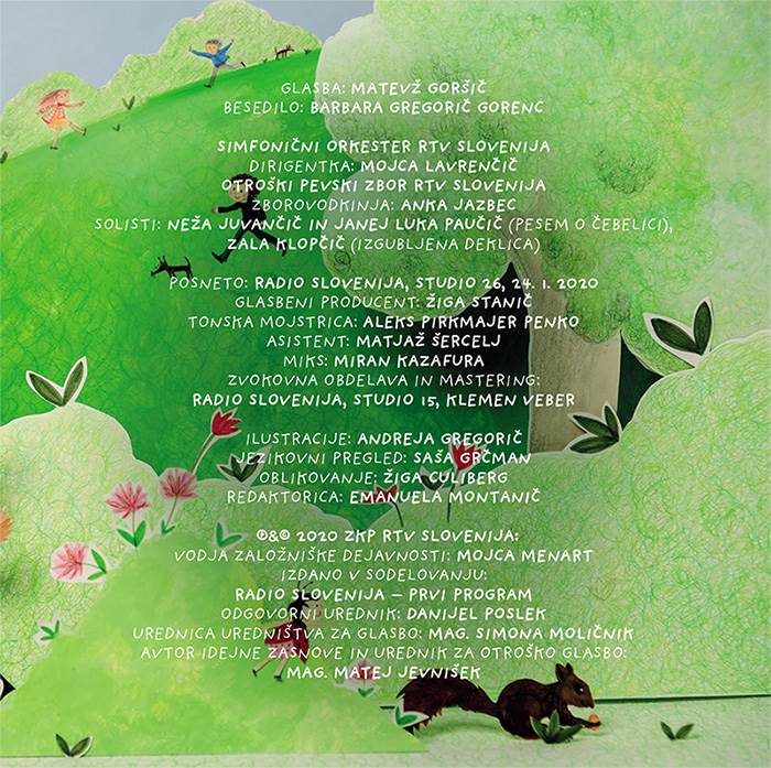 Besedila za pesmi je napisala Barbara Gregorič Gorenc, ki je navdih zanje dobila ob resničnem dogodku, glasbeno podobo pa jim je nadel Matevž Goršič. Skladbe izvajata Otroški pevski zbor RTV Slovenija pod zborovodkinjo Anko Jazbec in Simfonični orkester RTV Slovenija pod taktirko Mojce Lavrenčič.