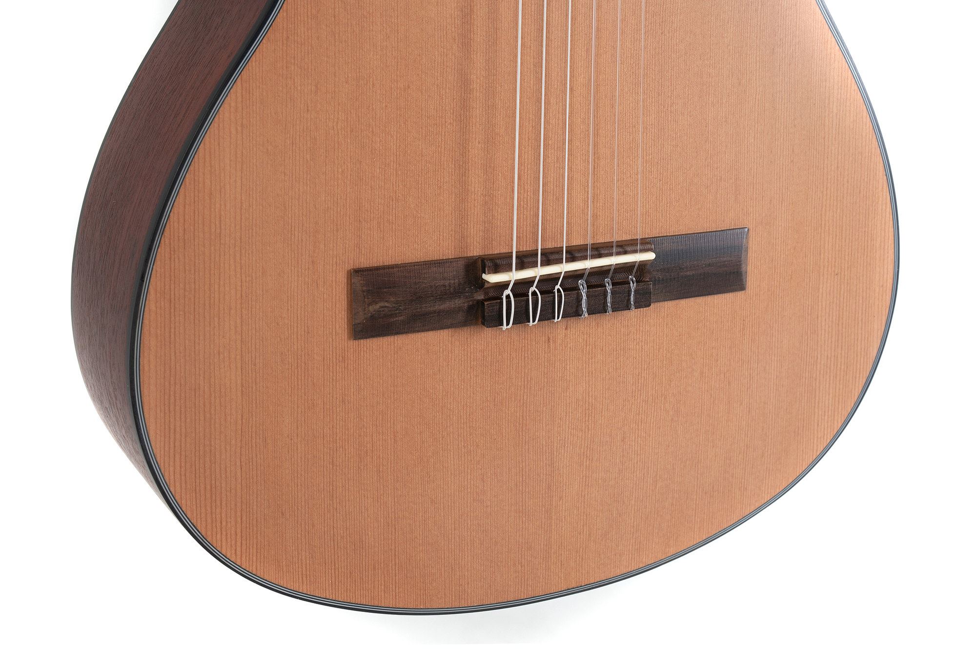 Cedrova plošča Hrbtna stran in stranice iz okoumeja Vrat iz okoumeja z ojačitvijo iz karbona Obroba telesa: ABS Ubiralka in kobilica: Blackwood Tek Prečke iz nikljevega srebra Kromirane glave mehanizma Okolju prijazen mat lak na vodni osnovi, naravne barve Velikost 4/4 Merilo 650 mm, širina nultega praga 52 mm