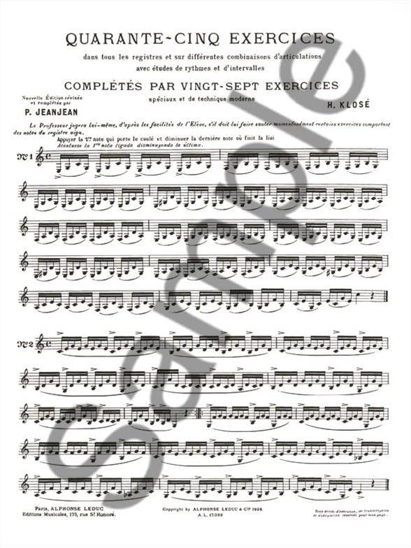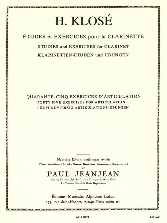 KLOSE:45 EXERCICES D'ARTICULATION CLARINET iz kategorije etude sodi med odlične klarinet.