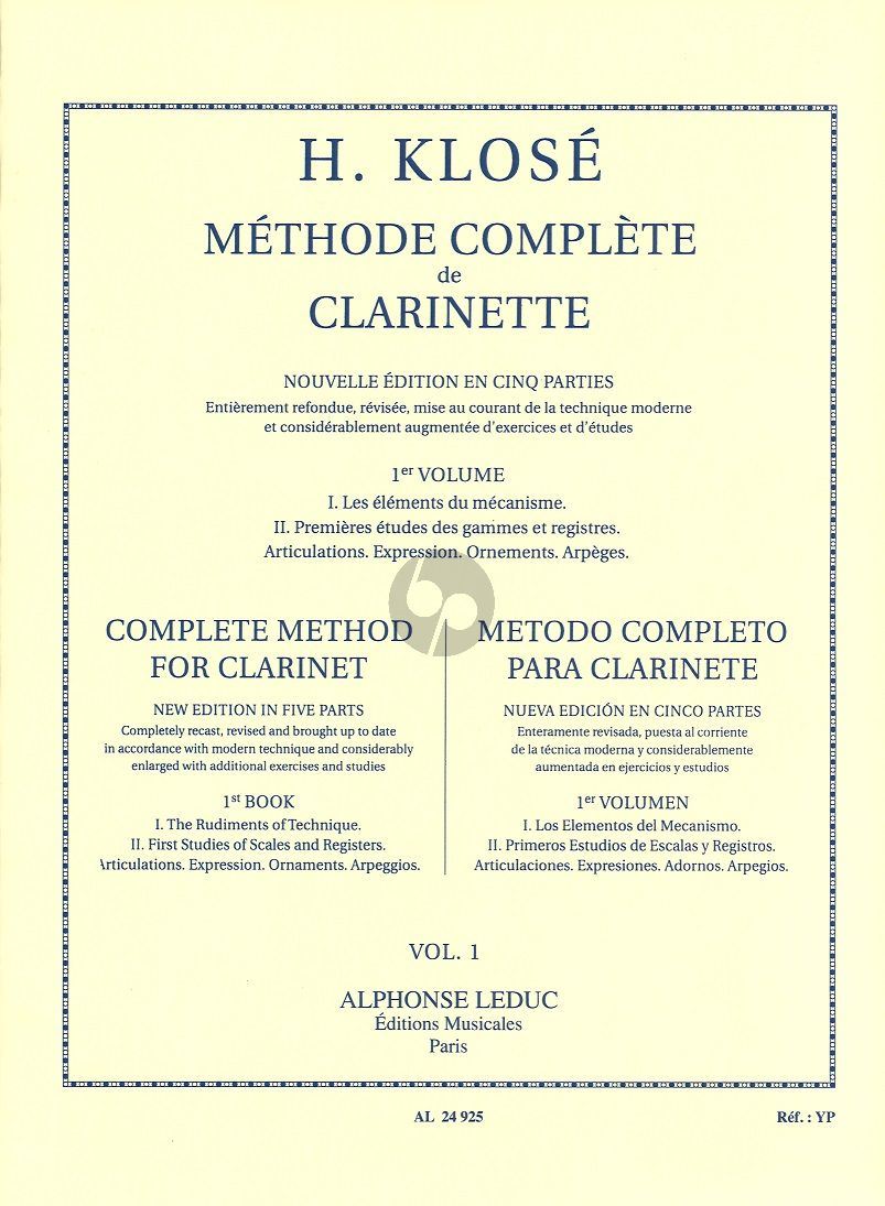 KLOSE:METHODE COMPLETE CLARINETTE VOL.1