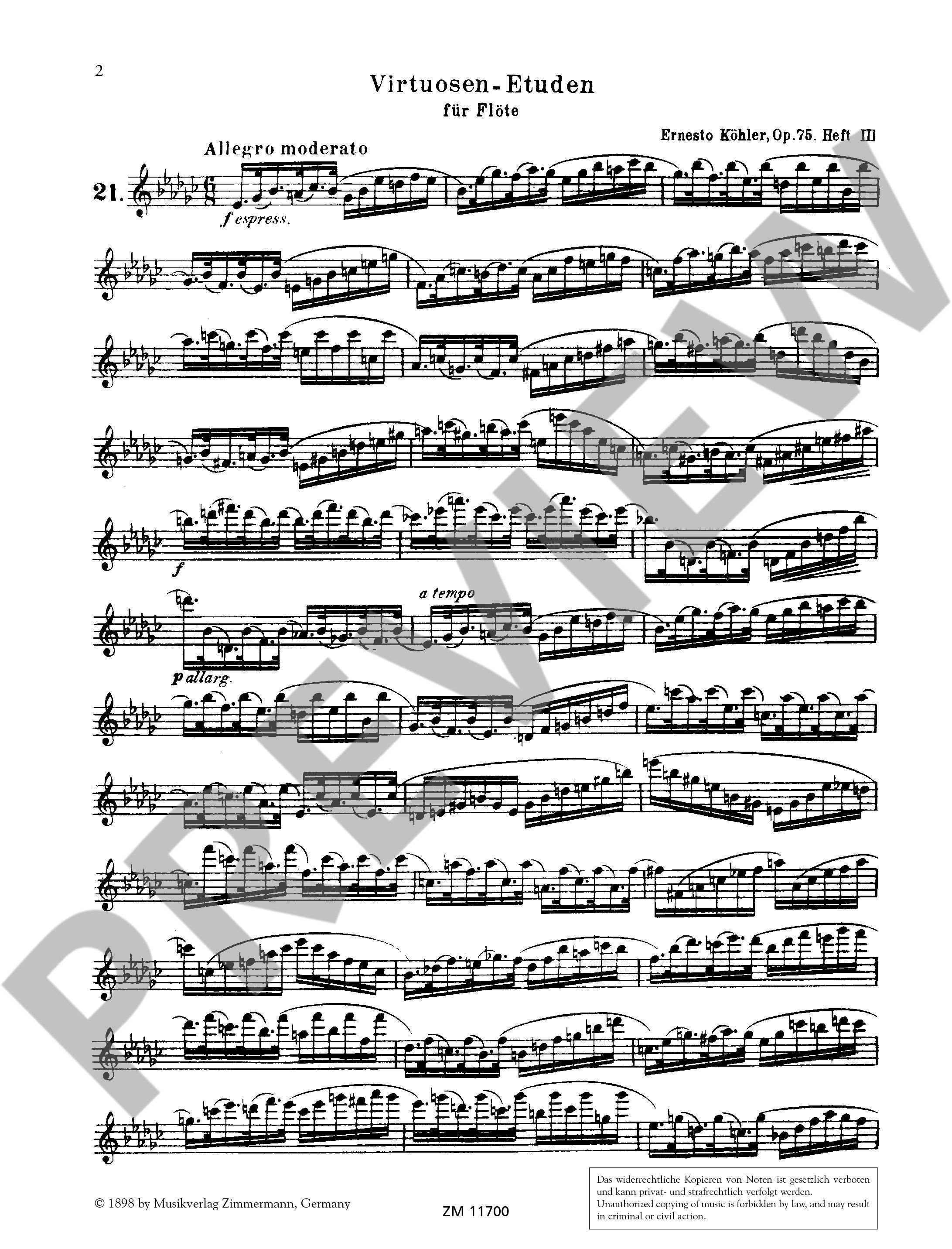 Zbirka virtuoznih etid ERNESTA KÖHLERJA (1849-1907) je tehnično zelo zahtevna, a hkrati daje veliko veselje do igranja. Študije zahtevajo dolgo prakso flavte, vendar ravno zaradi tega študije izredno očarajo.