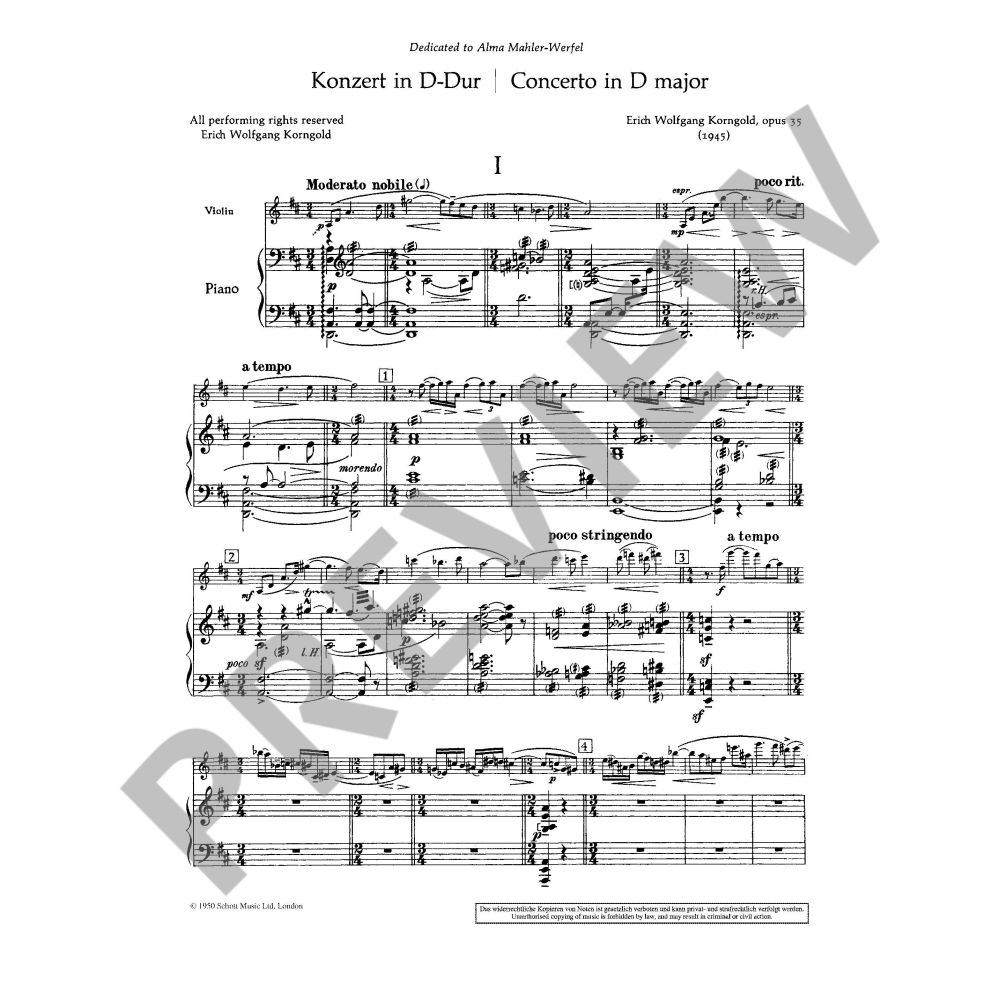 KORNGOLD:VIOLIN CONCERTO D-DUR OP.35 VIOLIN AND PIANO iz kategorije skladbe sodi med odlične violina.