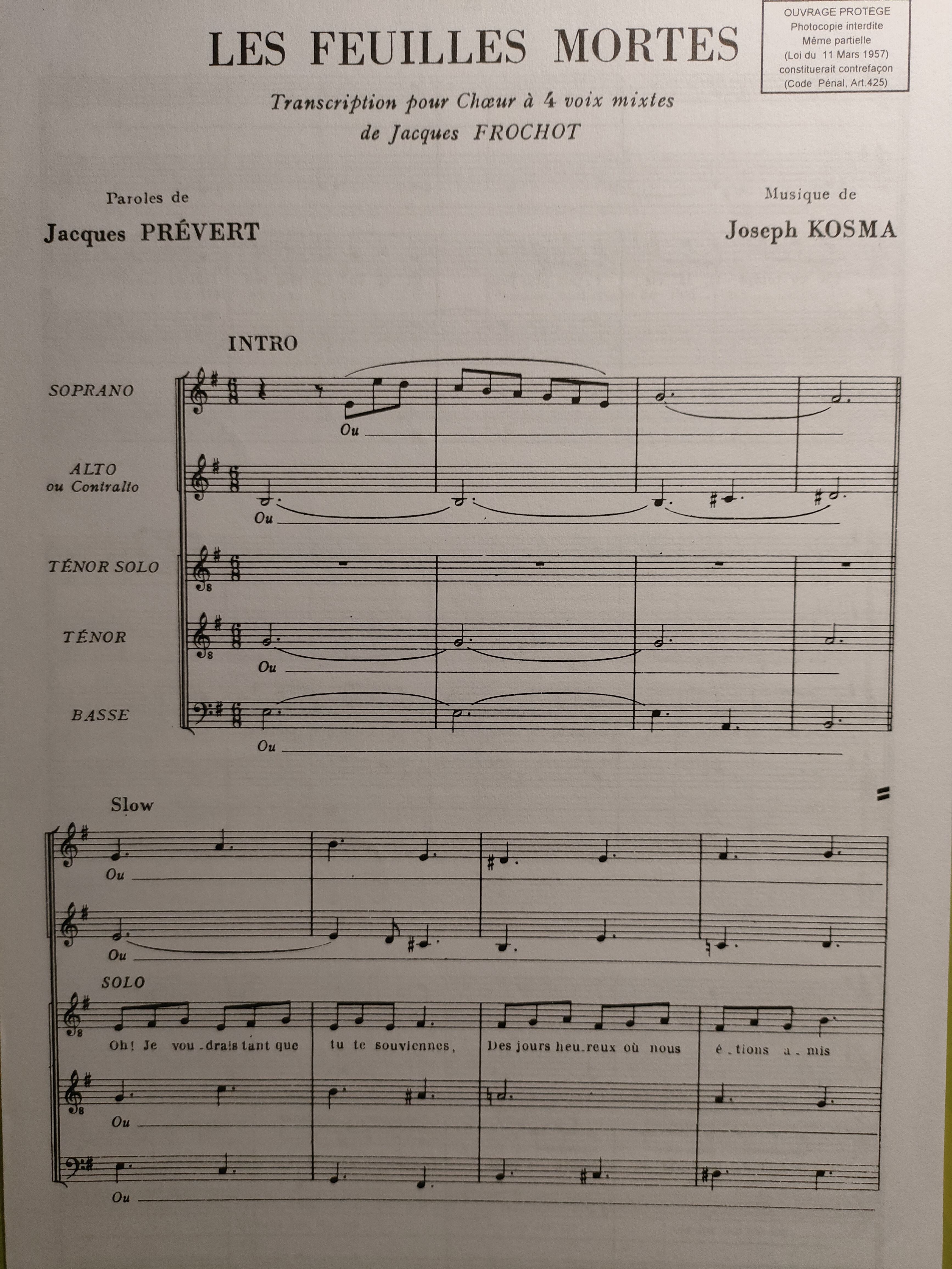KOSMA/FROCHOT:LES FEUILLES MORTES (AUTUMN LEAVES) SATB iz kategorije zbori sodi med odlične vokal.