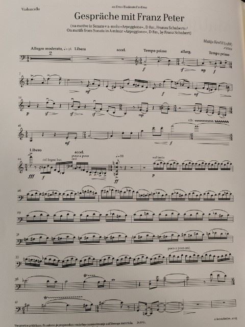 KREČIČ:GASPRACHE MIT FRANZ PETER VIOLONČELO IN KLAVIR iz kategorije skladbe sodi med odlične čelo.