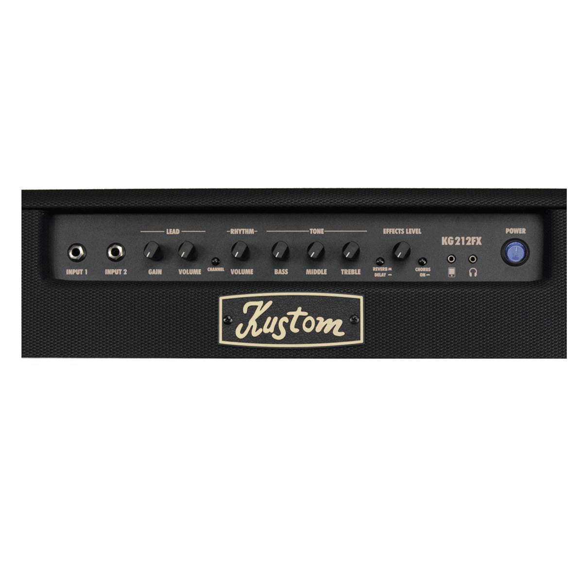 The Kustom KG212FX is a 30-watt guitar combo amplifier with two 12-inch Kustom speakers, two channels, and reverb, delay and chorus effects. It is designed to offer a wide range of clean and dirty tones, while providing rugged dependability and intuitive operation.