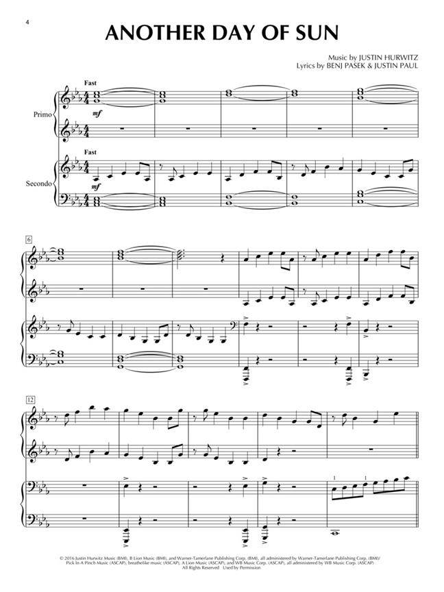 LA LA LAND FOR PIANO DUET 4 HANDS iz kategorije klavir 4 ročno sodi med odlične klavir.Another Day Of Sun (from LA LA LAND) Audition (The Fools Who Dream) (from LA LA LAND) City Of ...