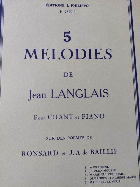LANGLAIS:5 MELODIES CHANT ET PIANO iz kategorije skladbe sodi med odlične vokal.