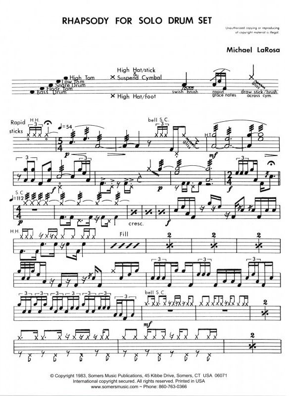 LAROSA M:RHAPSODY FOR SOLO DRUM SET iz kategorije skladbe sodi med odlične tolkala.