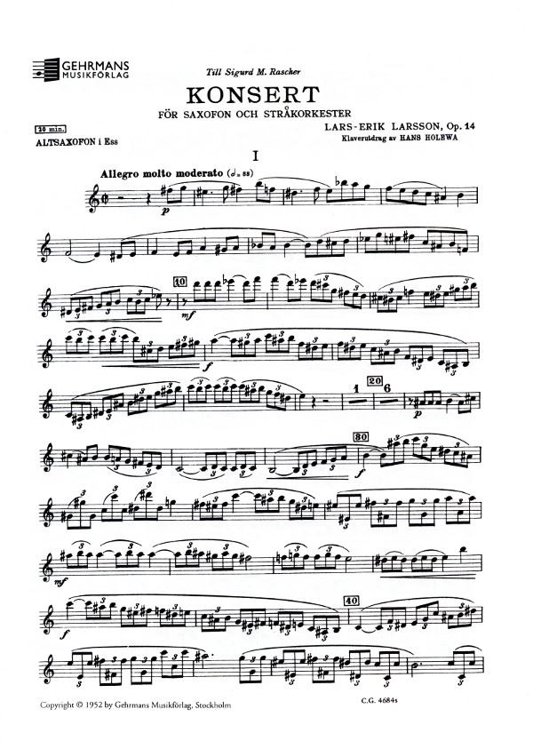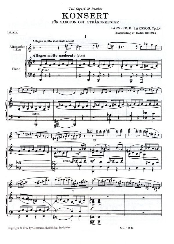 LARSSON L.E.:KONSEERT FOR SAXOFON/CONCERTO FOR SAXOPHONE AND PIANO iz kategorije skladbe sodi med odlične saksofon.