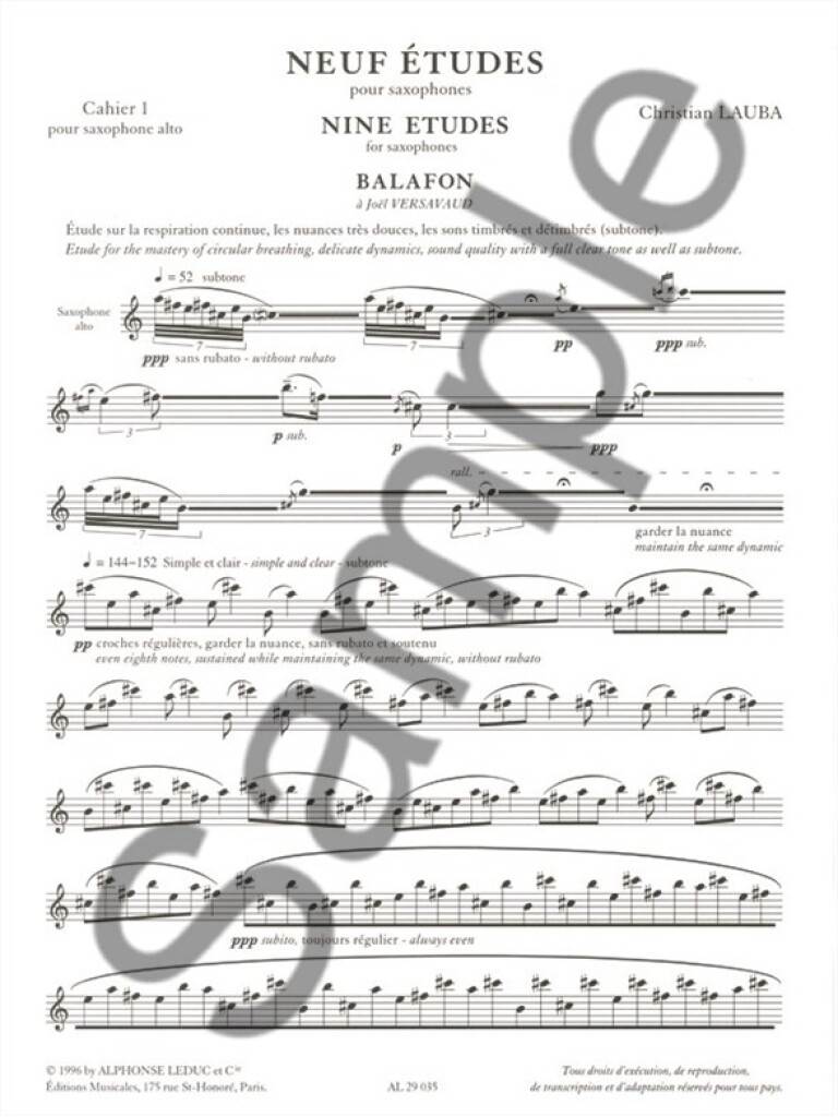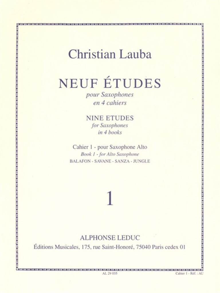 LAUBA C.:NEUF ETUDES VOL.1 SAXOPHONE iz kategorije etude sodi med odlične saksofon.AL29035 The first volume contains the first four studies; 1) Balafon, 2) Savane, 3) Sanza, and 4 ...