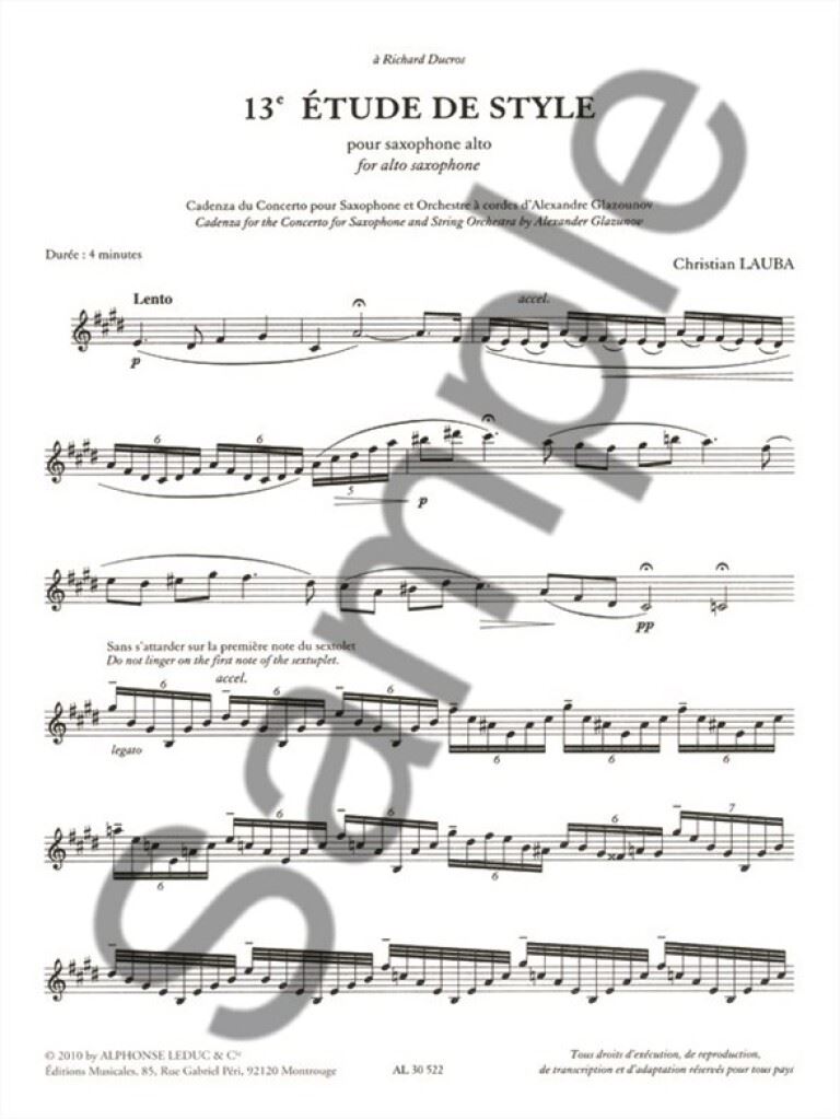 LAUBA:CADENCE/CADENZA FOR THE CONCERTO GLAZUNOV iz kategorije skladbe sodi med odlične saksofon.