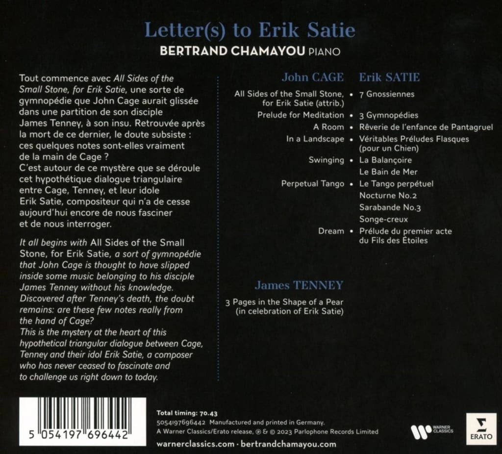 LETTER(S) TO ERIK SATIE/BERTRAND CHAMAYOU iz kategorije klasika in slovenska narodna sodi med odlične cd.
