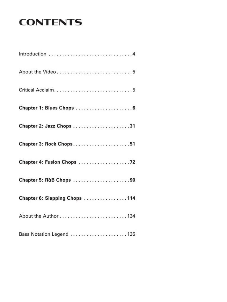 Bass Chops pokriva presek glasbenih zvrsti z edinstvenim pristopom korak za korakom za krepitev vaše splošne zmogljivosti na instrumentu. Lekcije v tej knjigi vključujejo standardne zapise, tabulatorje, prste in video demonstracije ter so predstavljene v formatu teme in variacije -- zelo učinkovit pristop k učenju basa, ki je postal zelo priljubljen pri študentih. Vsaka lekcija vam omogoča, da se premikate z lastnim tempom, začenši s preprostim utorom in postopoma postajati bolj zapleten in zapleten, ko lekcija napreduje. Slogi vključujejo blues, jazz, rock, fusion, R&B in slapping. Cena knjige vključuje skoraj dve uri video demonstracij vsakega primera v knjigi, ki jih izvaja avtor sam! Dostopajte do videoposnetkov na spletu, za prenos ali pretakanje, z uporabo edinstvene kode znotraj.