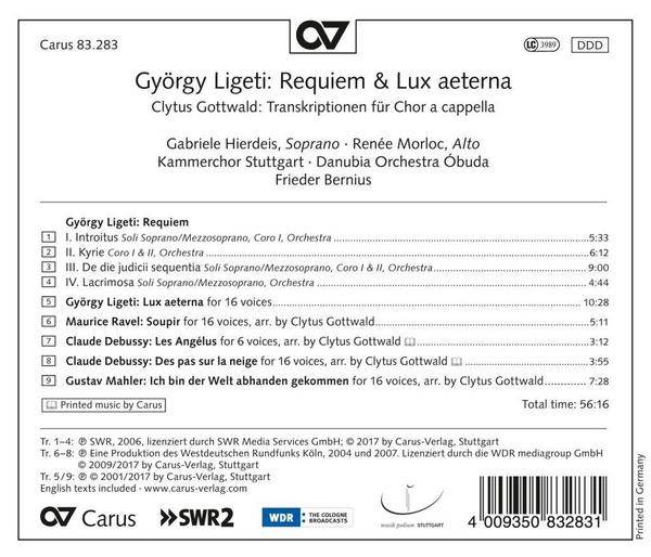 "György Ligeti je zame najpomembnejši skladatelj druge polovice 20. stoletja," je o skladatelju, ki je umrl leta 2006, povedal dirigent Frieder Bernius. Osnovna skladba zgoščenke je posnetek Requiema s Kammerchor Stuttgart, posnet v začetku leta 2006, ki jo je sam Ligeti pohvalil kot »izjemno interpretacijo«. Requiem je prvič izdan skupaj z Ligetijevim Lux aeterna, ki tako rekoč po vsebini predstavlja »dopolnitev«, saj tega Ligeti v svojem Requiemu ni postavil, čeprav je zadnji stavek. omenjenega liturgičnega besedila. Ti dve deli dopolnjujejo transkripcije Clytusa Gottwalda, posvečenca Lux aeterna, v katerih se menda orientira po Ligetijevi »mikrotonalnosti«.