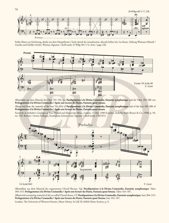 LISZT:APRES UNE LECTURE DU DANTE EARLIER BERSION AND FINAL VERSION iz kategorije skladbe, sodi med odlične klavir.