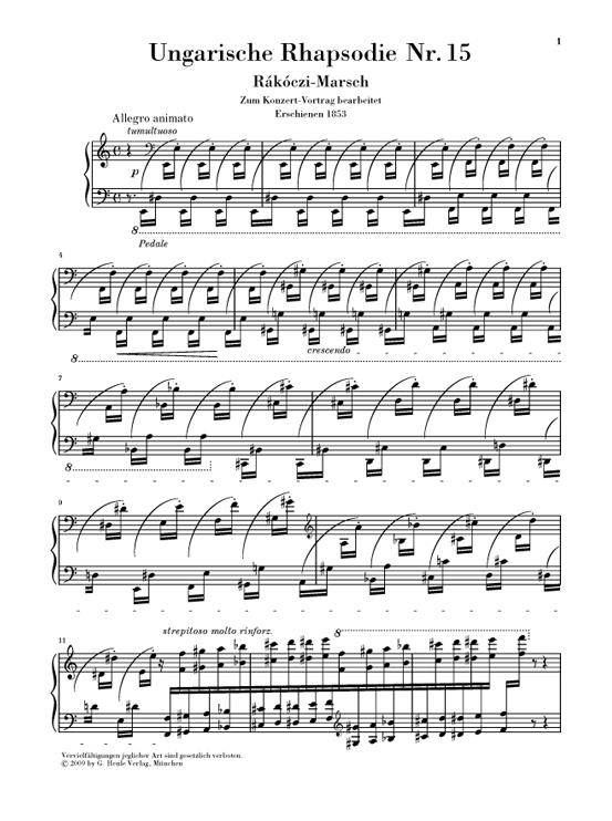 LISZT:UNGARISCHE RHAPSODIE NR.15 iz kategorije skladbe, sodi med odlične klavir.HN807 Pohod Rákóczi pogosto imenujejo "madžarska marseljeza". Začetki te pohodne pesmi segajo okrog ...
