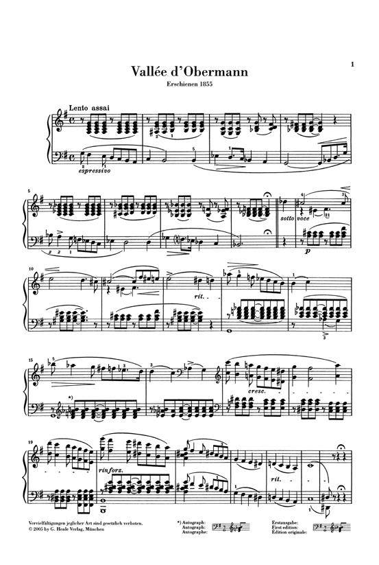 "Obermann", epistolarni roman francoskega romantika Senancourja, je Liszta navdihnil, da je napisal prvi zvezek v svoji zbirki "Années de Pelerinage" (HN 173). Popotnik išče svoje ideale v samoti švicarskih gora. Skladatelj se je s temi idejami lahko poistovetil do te mere, da je osmi komad ("Le Mal de Pays") predstavil z izvlečkom iz 38. pisma romana. To besedilo spremlja tudi našo izdajo šestega dela "Vallée d'Obermann". Za lažje razumevanje smo vključili tudi prevode francoskega originala v nemščino in angleščino. Zdaj je najpomembnejša skladba v “Années I” na voljo tudi v ločeni izdaji Henle urtext.