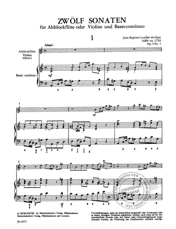 LOEILLET:12 SONATEN OP.1/1-3 iz kategorije skladbe sodi med odlične kljunasta flavta.