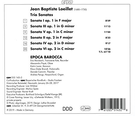 LOEILLET:TRIO SONATAS iz kategorije klasika in slovenska narodna sodi med odlične cd.