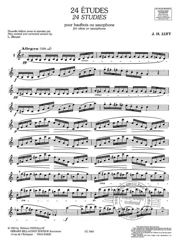 LUFT J.H.-24 ETUDES FOR OBOE OR SAX