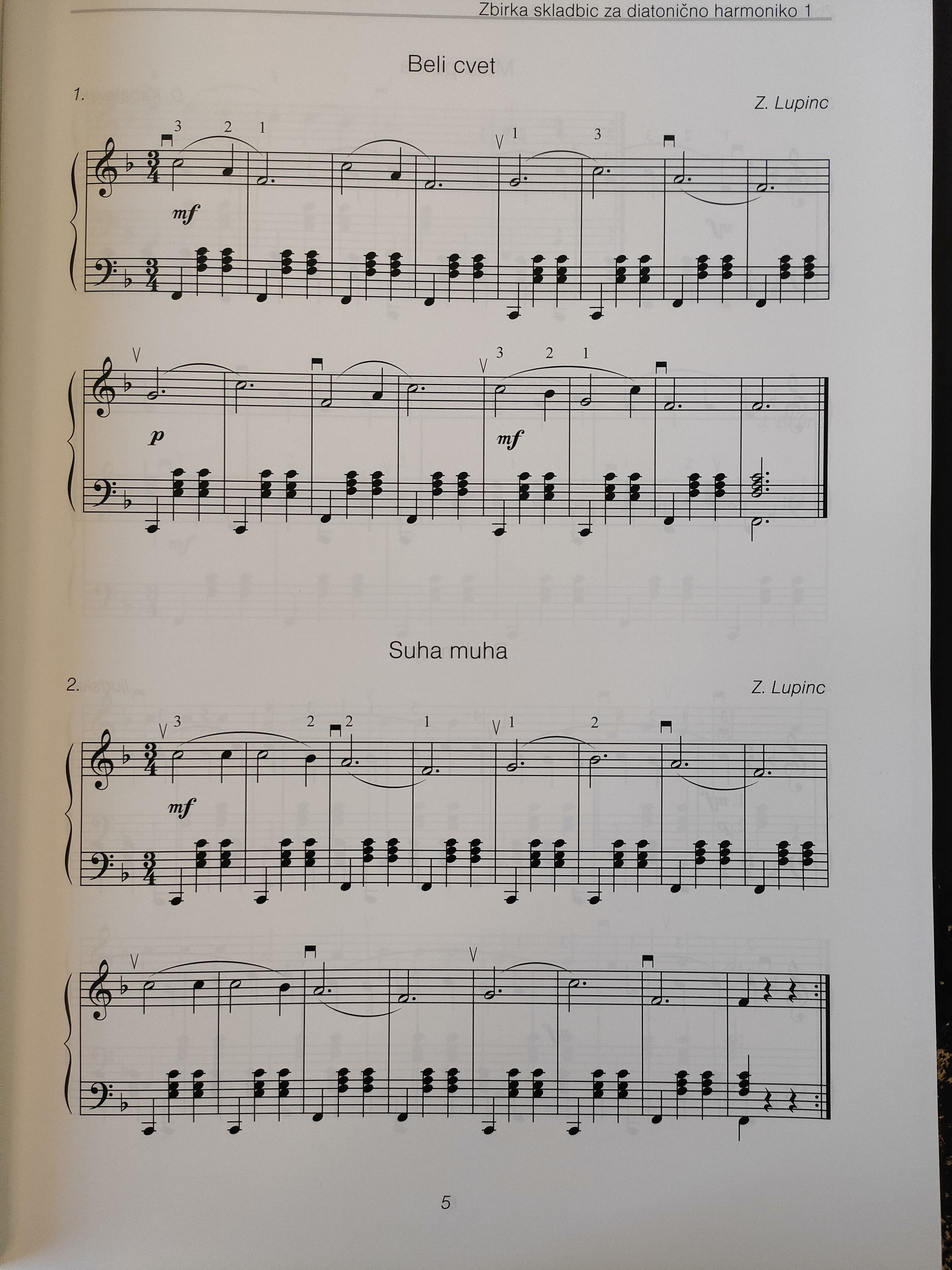 LUPINC:ZBIRKA SKLADB ZA DIATONIČNO HARMONIKO 1 iz kategorije skladbe sodi med odlične Diatonična.