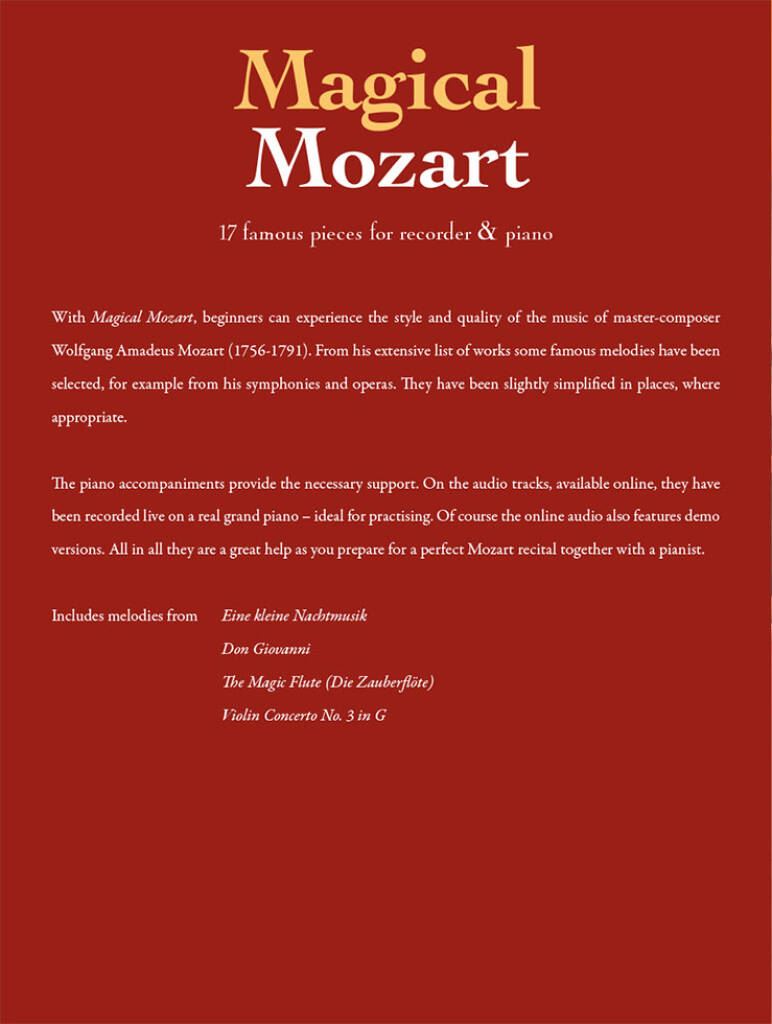MAGICAL MOZART FOR RECORD AND PIANO + AUDIO ACCESS iz kategorije skladbe sodi med odlične kljunasta flavta.