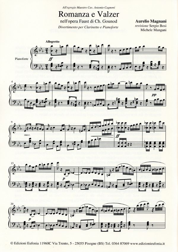 MAGNANI:ROMANZA E VALZER CLARINET AND PIANO iz kategorije skladbe sodi med odlične klarinet.