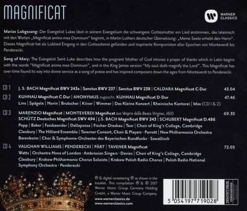 MAGNIFICAT/BACH,CALDARA,MONTEVERDI,SCHUBERT,PENDERECKI,PART/ 4CD