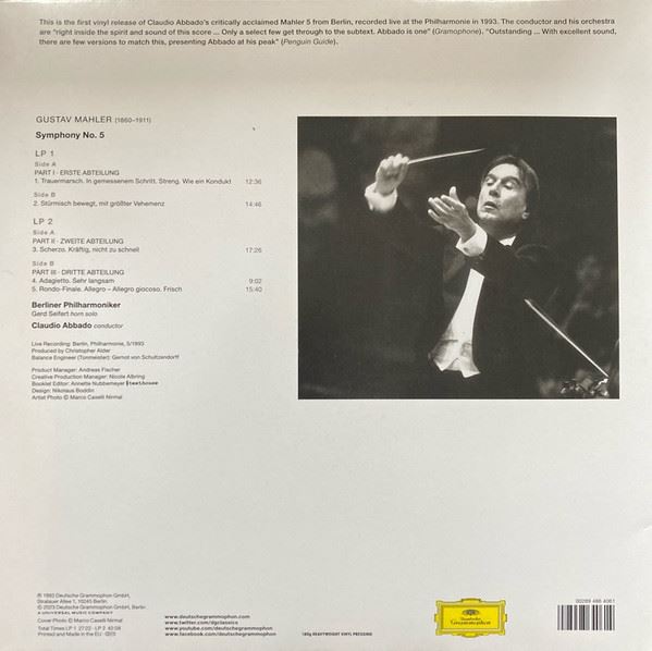 MAHLER:SYMPHONY NO.5/ABBADO 2LP iz kategorije lp sodi med odlične Nosilci zvoka in slike.