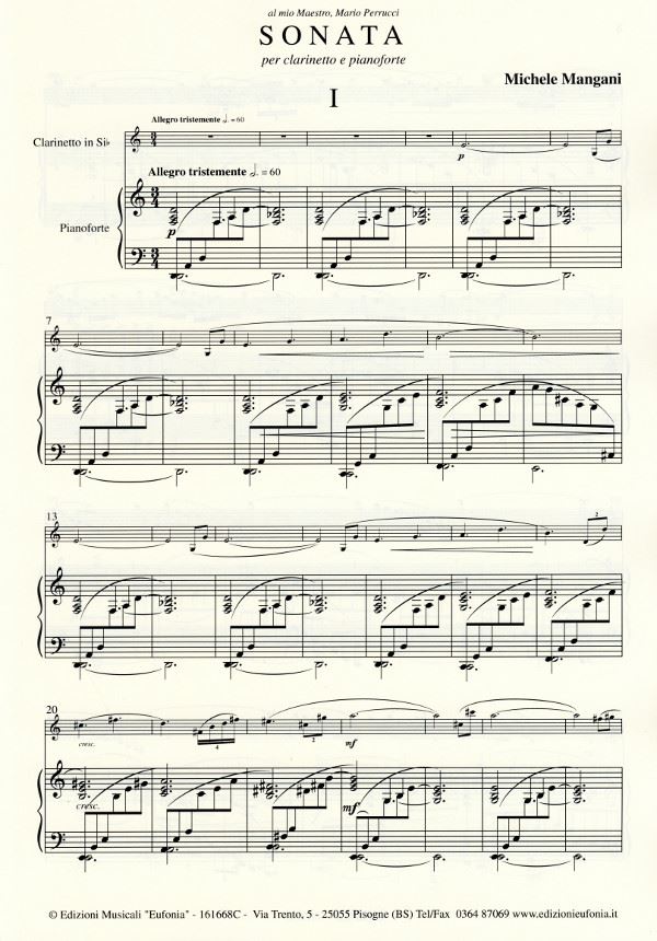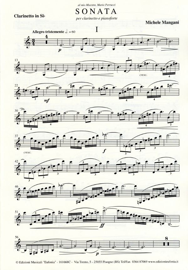 MANGANI:SONATA CLARINETTO E PIANOFORTE iz kategorije skladbe sodi med odlične klarinet.