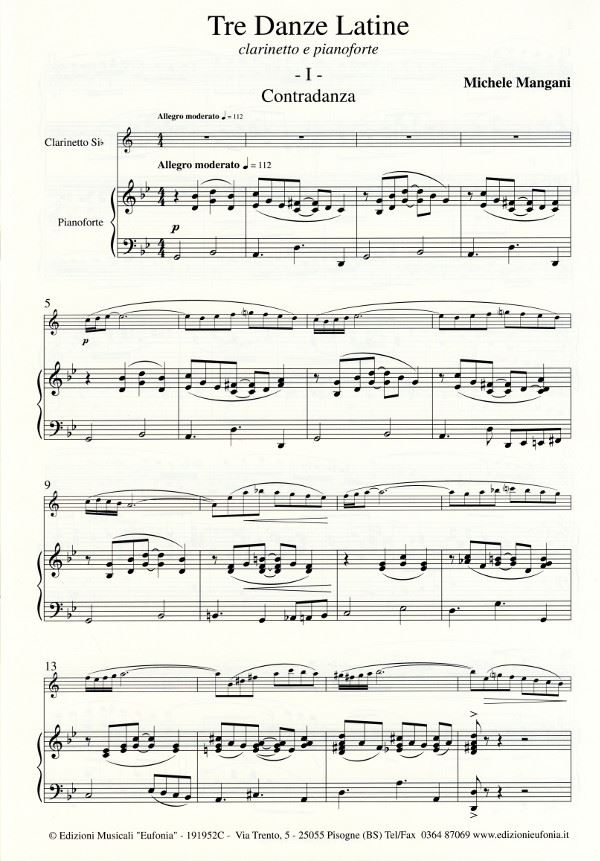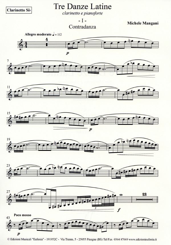 MANGANI:TRE DANZE LATINE CLARINETTO E PIANOFORTE iz kategorije skladbe sodi med odlične klarinet.