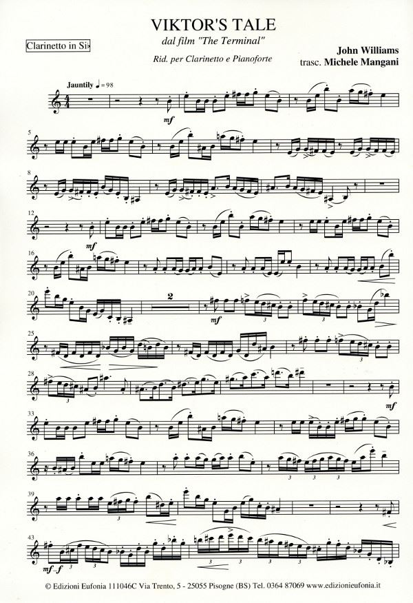 MANGANI:VICTOR'S TALE DAL FILM "THE TERMINAL" CLARINETTO E PIANOFORTE iz kategorije skladbe sodi med odlične klarinet.