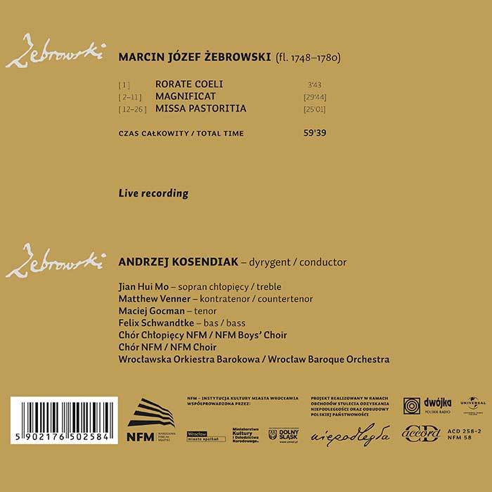 MARCIN JOZEF ZEBROWSKI:RORATE COELI/MAGNIFICAT/MISSA PASTORITIA KOSENDIAK